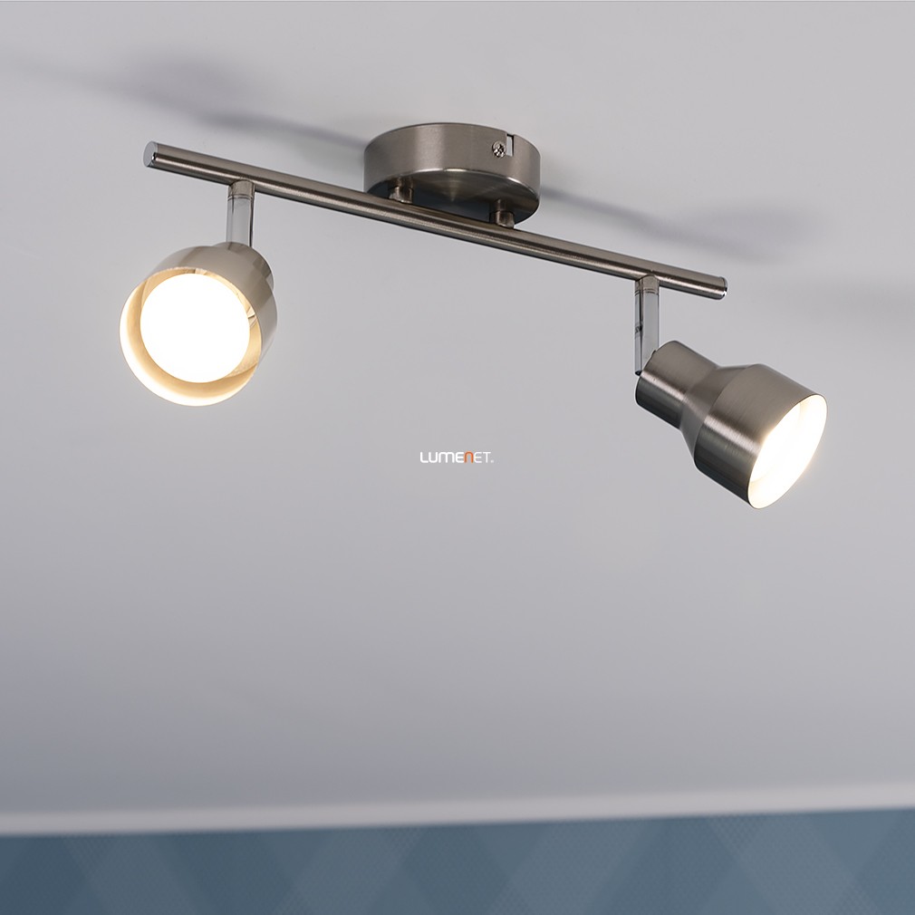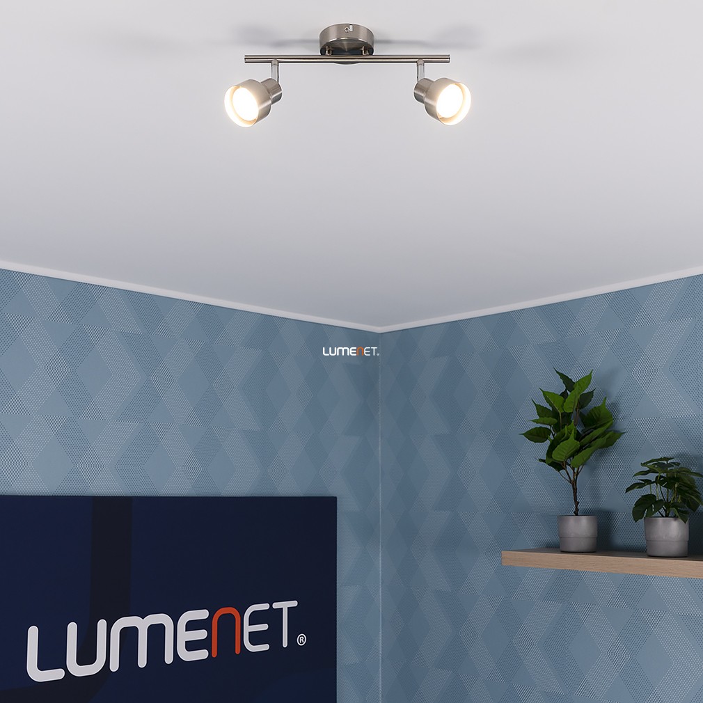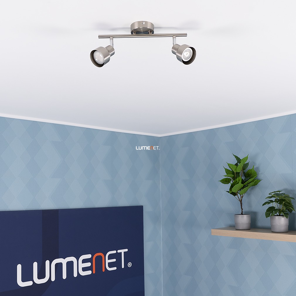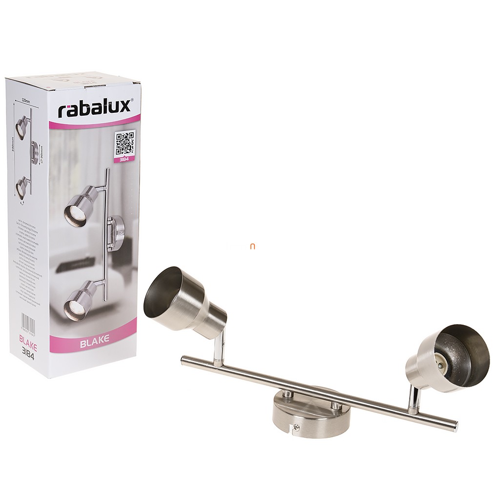 A Blake Rábalux 3184 mennyezeti spot lámpa két GU10 foglalattal rendelkezik, amelyek külön-külön irányíthatók, így lehetővé teszi a fény optimális elosztását a helyiségben. A lámpatest modern stílusú, króm színű fém anyagból készült, ami tartósságot és elegáns megjelenést biztosít. A lámpa nem tartalmaz fényforrást, így a felhasználó szabadon választhatja meg a kívánt teljesítményt, fényáramot, színhőmérsékletet és fényszínt a cserélhető fényforrásnak köszönhetően. A termék IP20 védettséggel rendelkezik, ezért elsősorban beltéri használatra ajánlott. Méretei 340 mm hosszúság, 145 mm szélesség és 120 mm magasság, tömege pedig 0,54 kg. A lámpa nem szabályozható, egyszerűen szerelhető mennyezeti rögzítéssel, így praktikus megoldást nyújt lakásvilágítási feladatokra.
