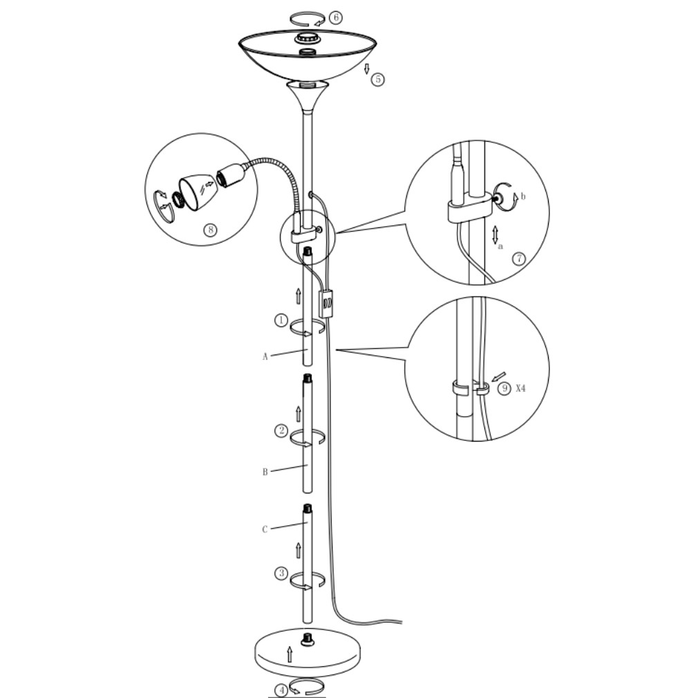 A Mennyezetvilágító állólámpa 177 cm, fehér-bronz színű – Up Eglo 82844 egy modern stílusú, két foglalattal rendelkező világítótest, amely acél és műanyag felhasználásával készült. A lámpa 176,5 cm magasságú, átmérője 27,5 cm, tömege 4,31 kg. Egy E27 és egy E14 foglalattal van ellátva, amelyek cserélhető fényforrásokat támogatnak. A világítás működtetése zsinórkapcsolóval történik, a lámpatest nem tartalmaz fényforrást. A termék IP20 védettséggel rendelkezik, így beltéri használatra alkalmas. A csomagolás méretei: 29 cm hosszú, 11 cm széles, 44 cm magas. A gyártó az EGLO.