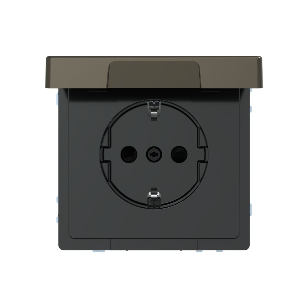 Schneider Electric Merten System Design - MEG2314-6052 - 2P+F csatlakozóaljzat biztonsági zsaluval, csapófedéllel, rugós, 16A, IP44, mokka