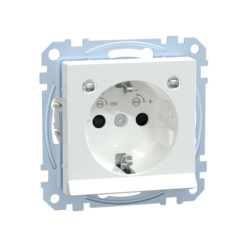 MERTEN 2P+F aljzat (GYV) biztonsági zsalus, LED világítással, rugós, 16A, System-M, aktív fehér, antibakteriális MEG2304-0325 Schneider
