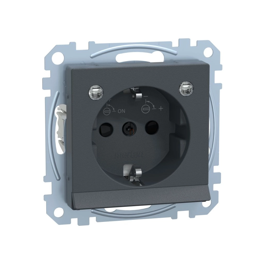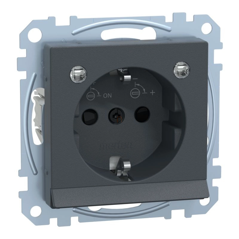 MERTEN 2P+F aljzat (GYV) biztonsági zsalus, LED világítással, rugós bekötés, 16A, System-M, antracit MEG2304-0414 Schneider