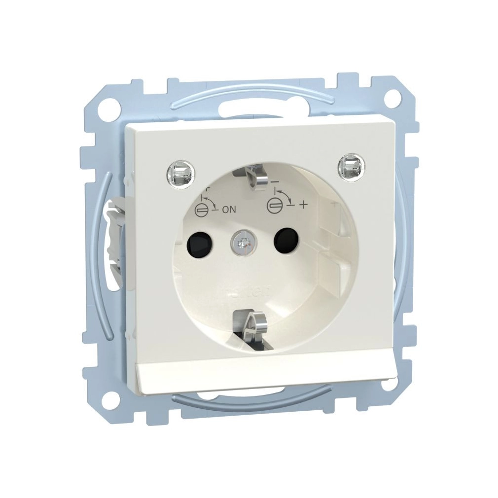 MERTEN 2P+F aljzat (GYV) biztonsági zsalus, LED világítással, rugós bekötés, 16A, System-M, polárfehér MEG2304-0319 Schneider