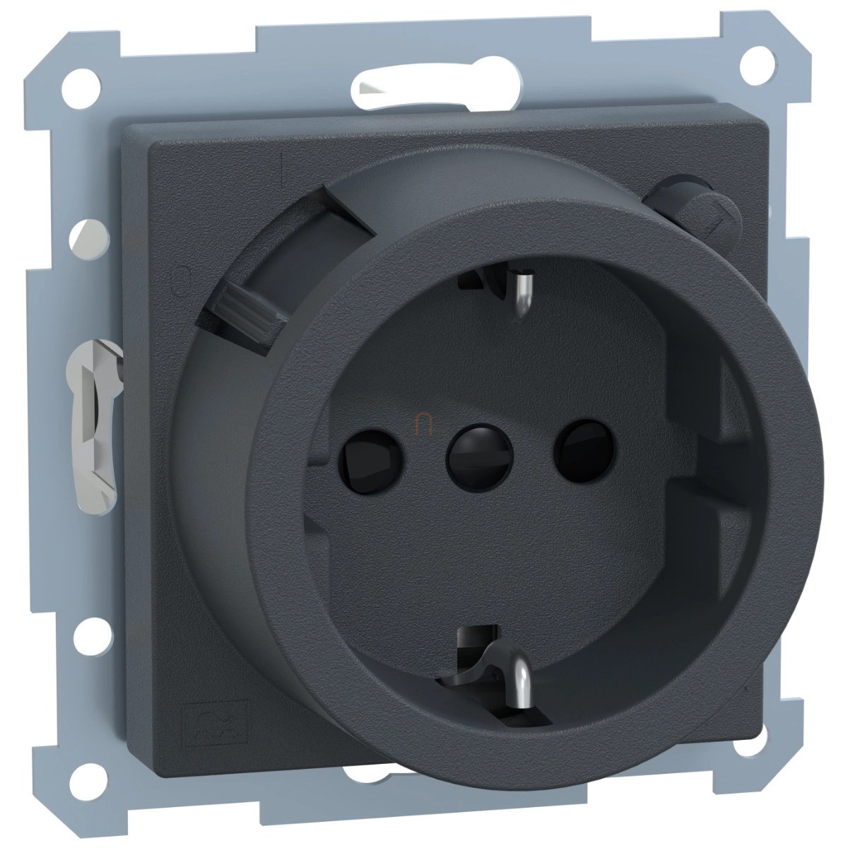 MERTEN 2P+F csatlakozóaljzat, biztonsági zsaluval, áramvédő-kapcsolóval, rugós, 16A, 30mA, System-M, antracit 232814 Schneider