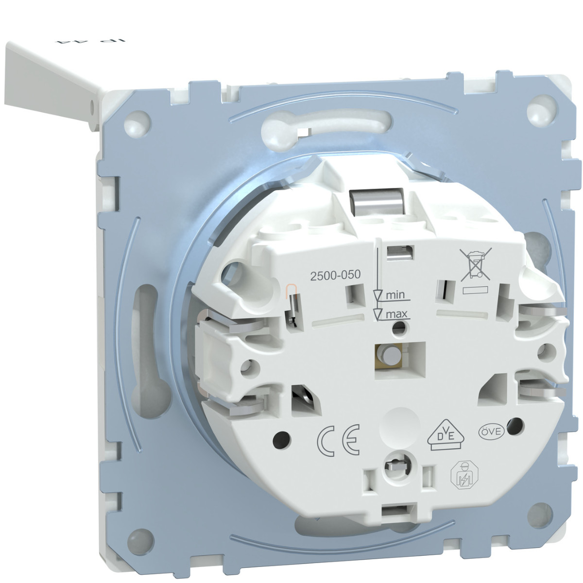 Schneider Electric Merten System Design - MEG2314-6035 - 2P+F csatlakozóaljzat biztonsági zsaluval, csapófedéllel, rugós, 16A, IP44, lótuszfehér
