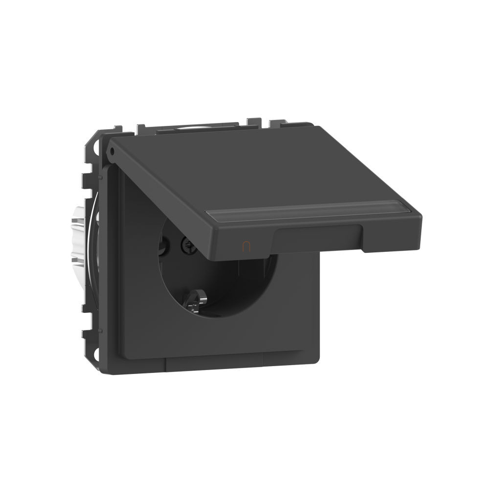 MERTEN 2P+F csatlakozóaljzat, biztonsági zsaluval, feliratozható csapófedéllel, rugós, 16A, System-D, antracit MEG2312-6034 Schneider