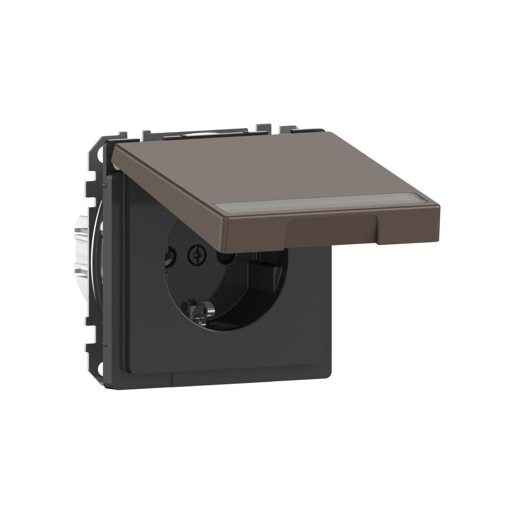 Schneider Electric Merten System Design - MEG2312-6052 - 2P+F csatlakozóaljzat biztonsági zsaluval, feliratozható csapófedéllel, rugós, 16A, mokka