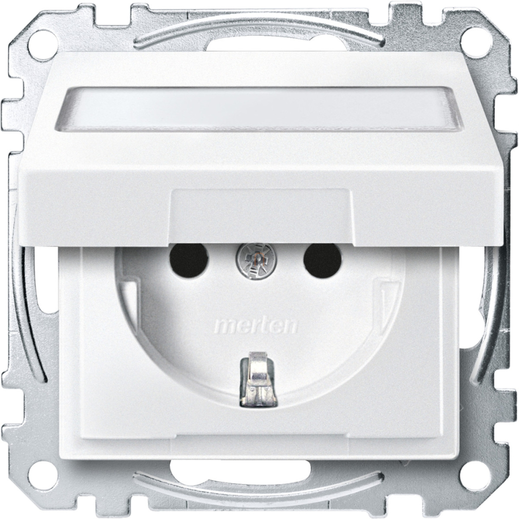 MERTEN 2P+F csatlakozóaljzat, biztonsági zsaluval, feliratozható csapófedéllel, rugós, 16A, System-M, mattfehér MEG2312-0419 Schneider