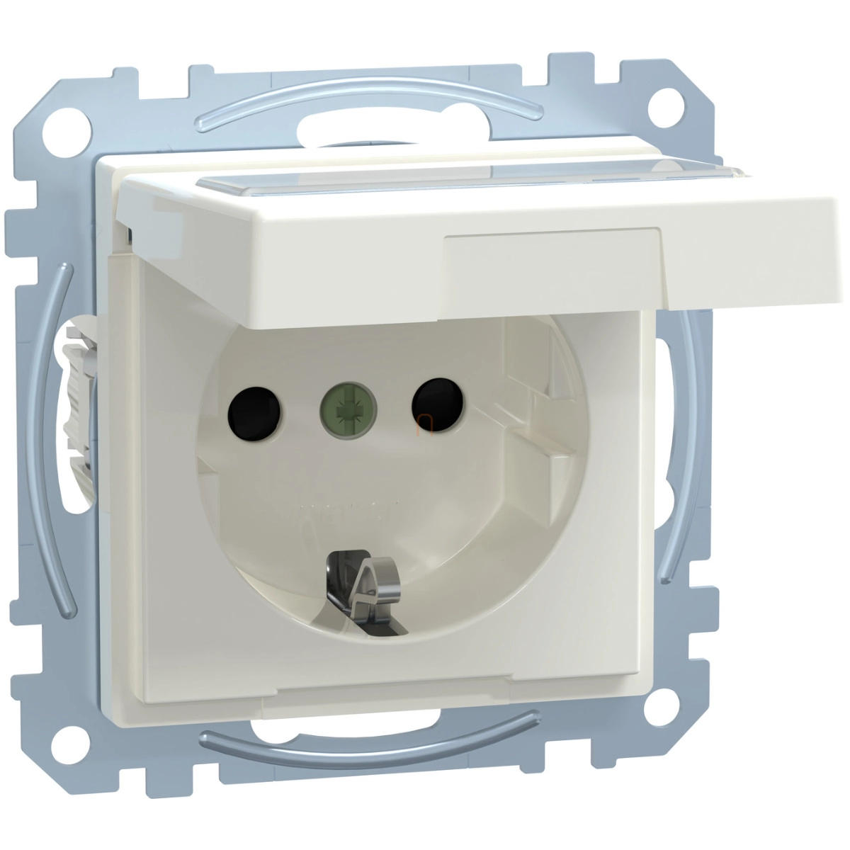 MERTEN 2P+F csatlakozóaljzat, biztonsági zsaluval, feliratozható csapófedéllel, rugós, 16A, System-M, polárfehér MEG2312-0319 Schneider