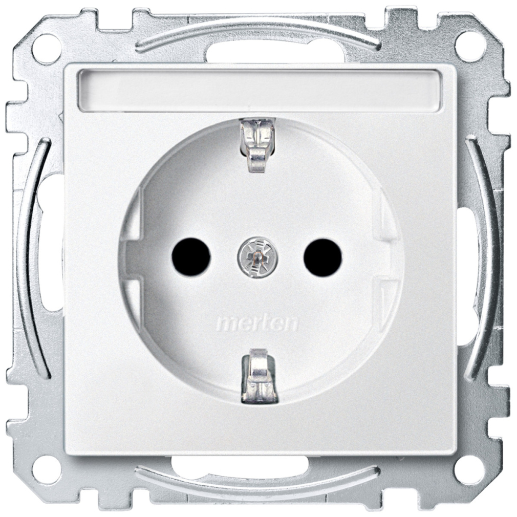 MERTEN 2P+F csatlakozóaljzat, biztonsági zsaluval, feliratozható, rugós, 16A, System-M, mattfehér MEG2302-0419 Schneider