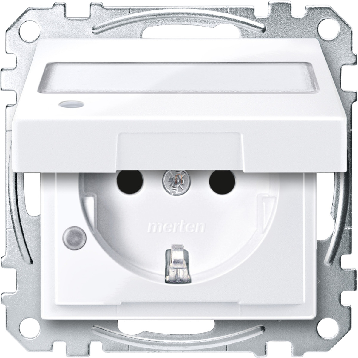 MERTEN 2P+F csatlakozóaljzat, biztonsági zsaluval, jelzőfénnyel, felir. csapófedéllel, rugós, 16A, System-M, aktívfehér MEG2313-0325 Schneider