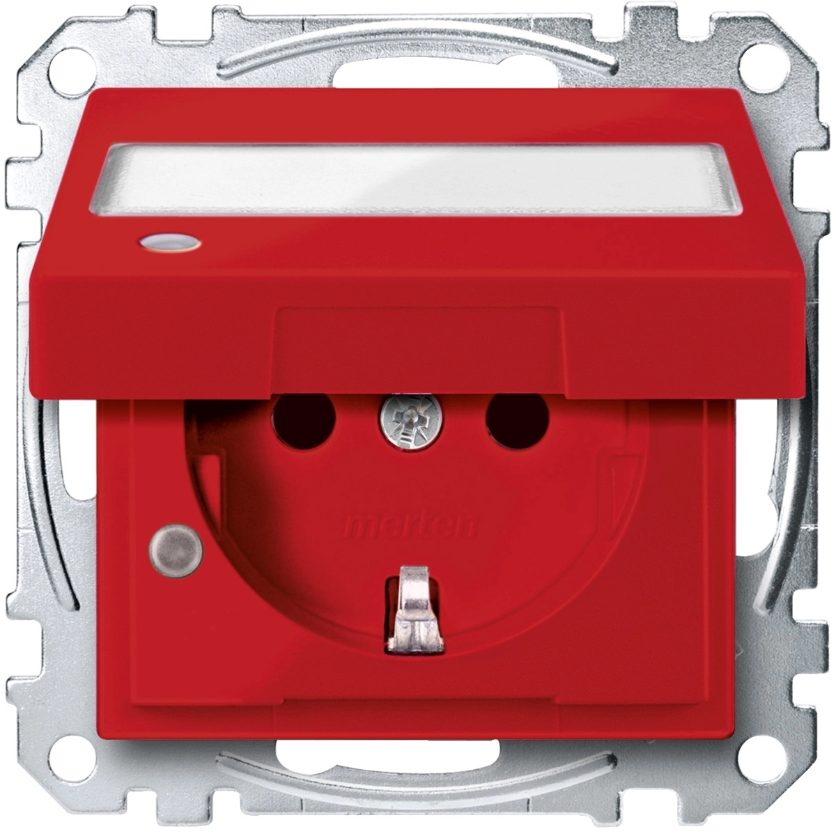 MERTEN 2P+F csatlakozóaljzat, biztonsági zsaluval, jelzőfénnyel, felir. csapófedéllel, rugós, 16A, System-M, piros MEG2313-0306 Schneider
