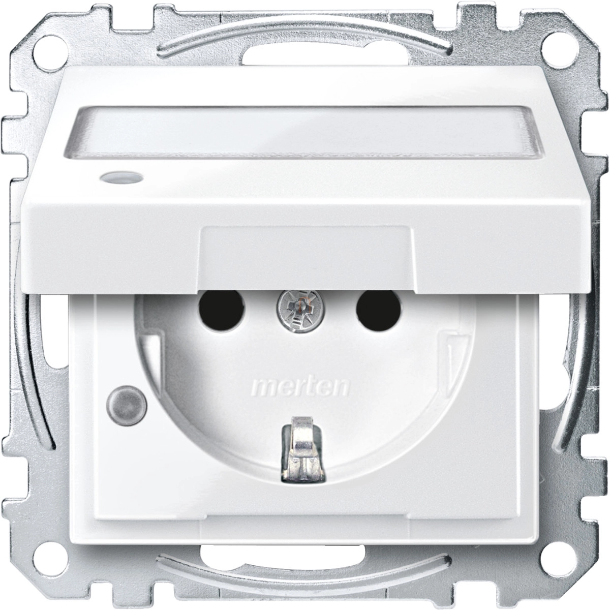 MERTEN 2P+F csatlakozóaljzat, biztonsági zsaluval, jelzőfénnyel, felir. csapófedéllel, rugós, 16A, System-M, polárfehér MEG2313-0319 Schneider