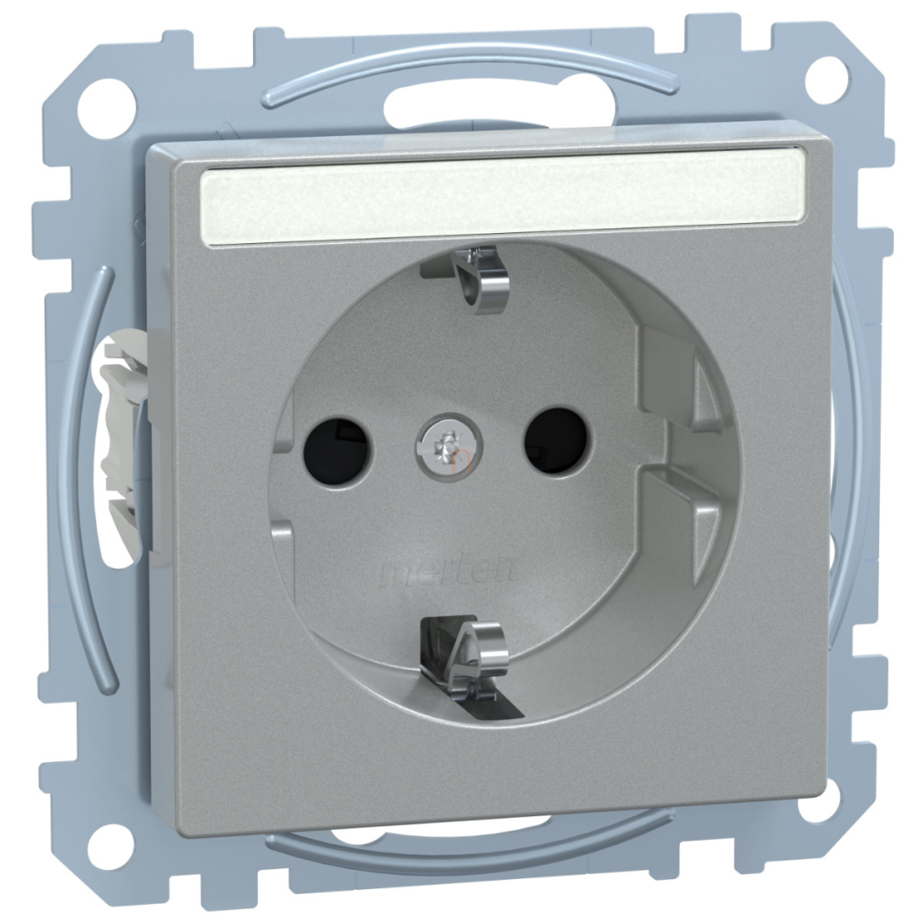 Schneider Merten 2P+F csatlakozóaljzat, biztonsági zsaluval, jelzőfénnyel, feliratozható, rugós, 16A, System-M, alumínium MEG2303-0460