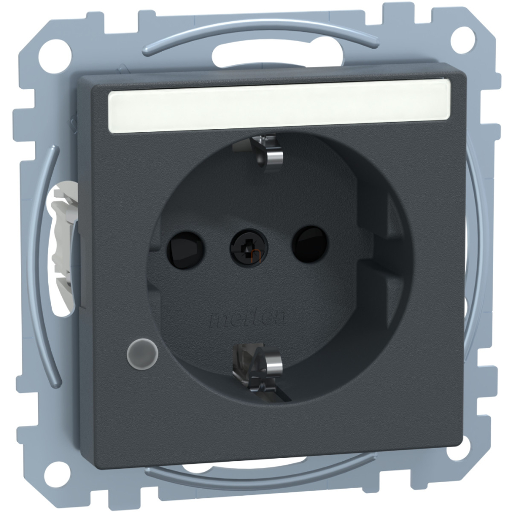 MERTEN 2P+F csatlakozóaljzat, biztonsági zsaluval, jelzőfénnyel, feliratozható, rugós, 16A, System-M, antracit MEG2303-0414 Schneider