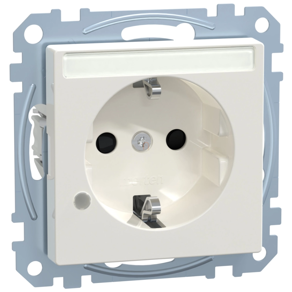 MERTEN 2P+F csatlakozóaljzat, biztonsági zsaluval, jelzőfénnyel, feliratozható, rugós, 16A, System-M, polárfehér MEG2303-0319 Schneider