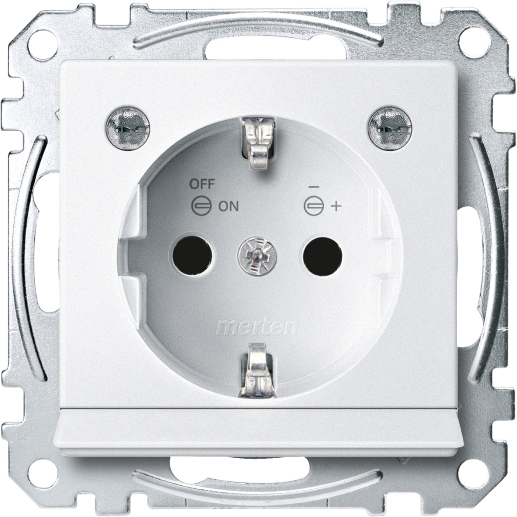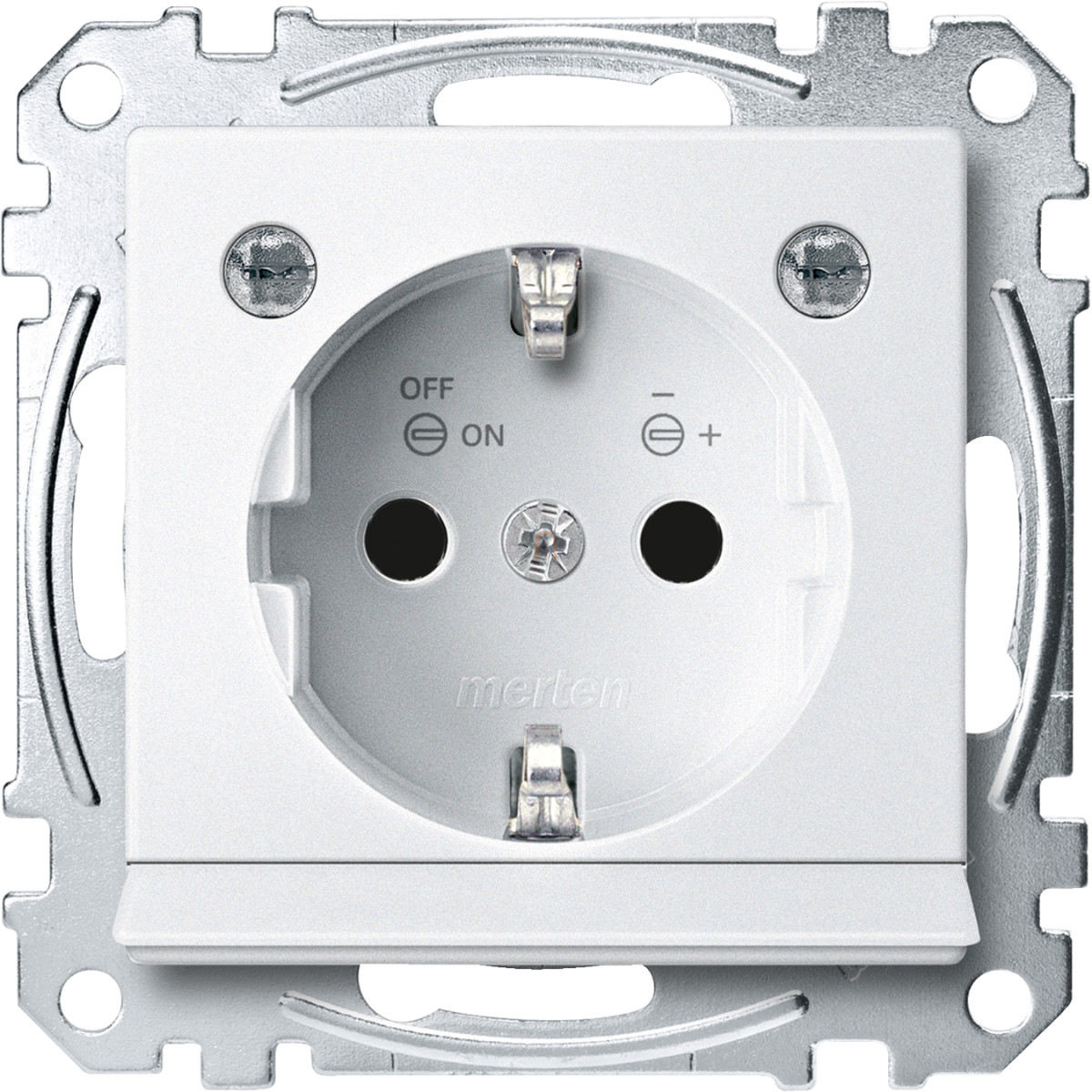 MERTEN 2P+F csatlakozóaljzat, biztonsági zsaluval, LED világítással, rugós, 16A, System-M, mattfehér MEG2304-0419 Schneider