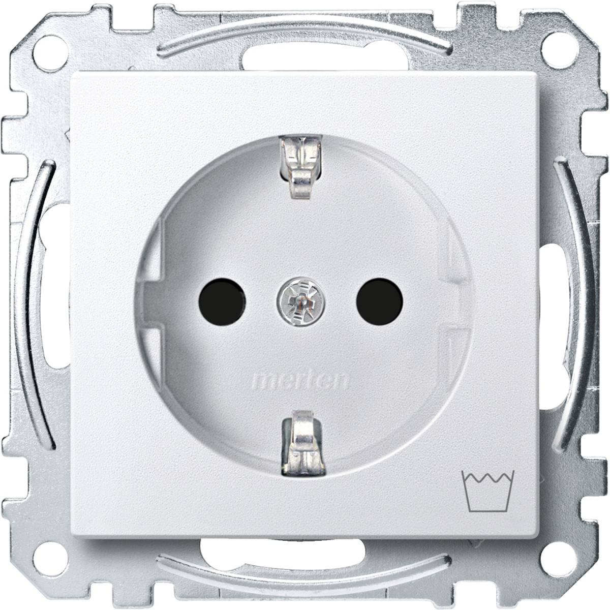 MERTEN 2P+F csatlakozóaljzat, biztonsági zsaluval, mosógép szimbólummal, rugós, 16A, System-M, mattfehér MEG2352-0419 Schneider