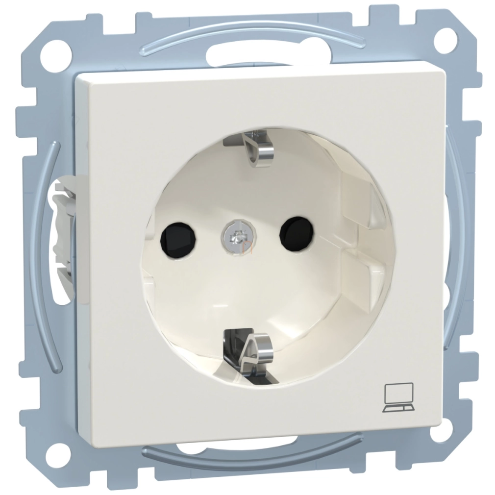 Schneider Merten 2P+F csatlakozóaljzat, biztonsági zsaluval, számítógép szimbólummal, rugós, 16A, System-M, polárfehér MEG2350-0319