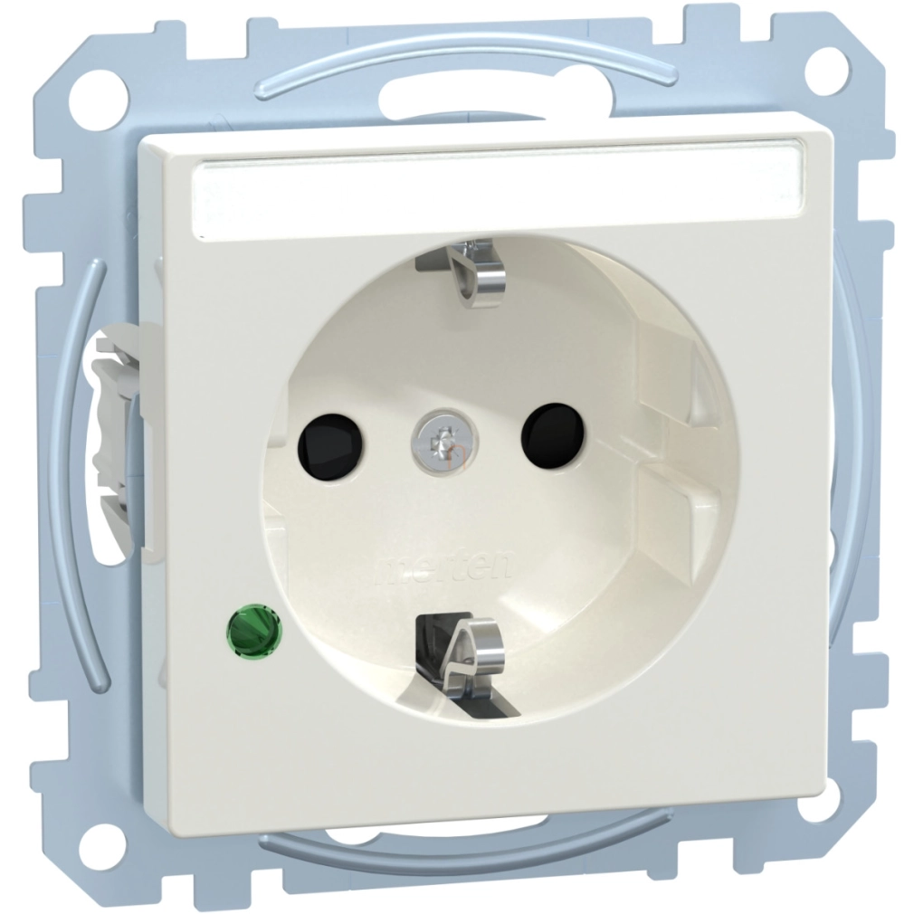 MERTEN 2P+F csatlakozóaljzat, biztonsági zsaluval, túlfesz-korlátozóval, feliratozható, rugós, 16A, System-M, polárfehér MEG2305-0319 Schneider