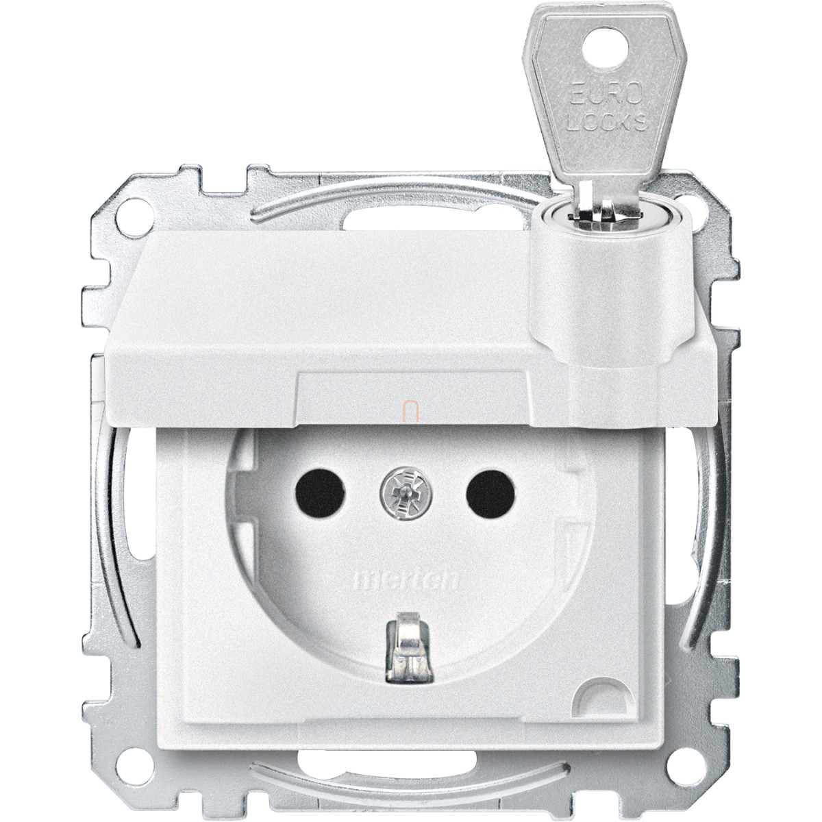 MERTEN 2P+F csatlakozóaljzat, biztonsági zsaluval, zárható csapófedéllel, rugós, 16A, System-M, mattfehér MEG2315-0419 Schneider