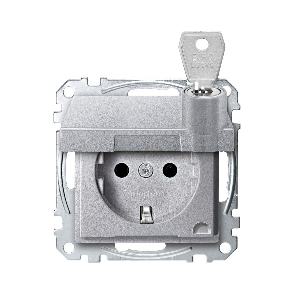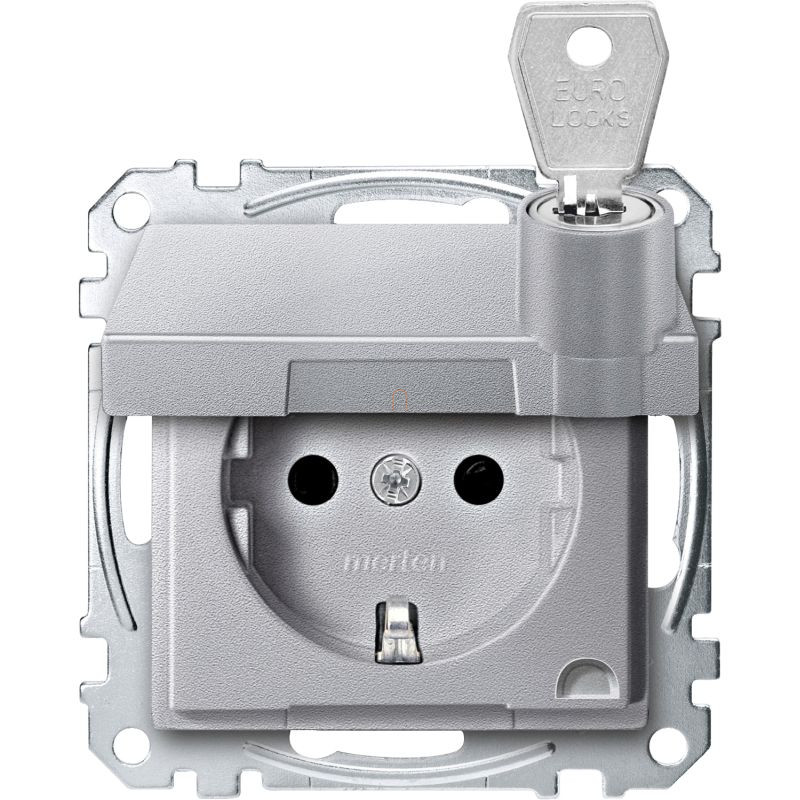 Schneider Electric Merten System M - MEG2315-0460 - 2P+F csatlakozóaljzat, biztonsági zsaluval, zárható csapófedéllel, rugós, 16A, alumínium