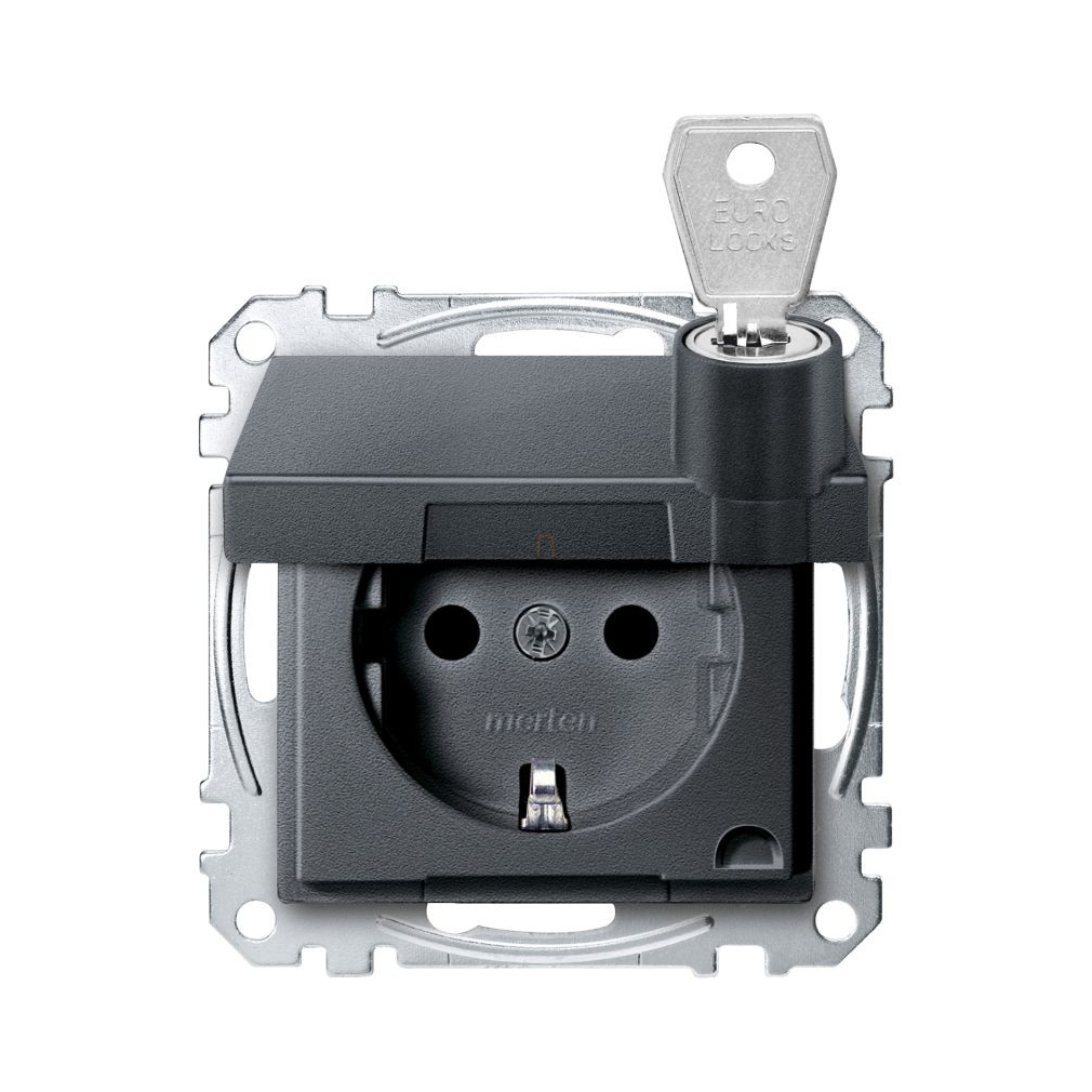 Schneider Electric Merten System M - MEG2315-0414 - 2P+F csatlakozóaljzat, biztonsági zsaluval, zárható csapófedéllel, rugós, 16A, antracit