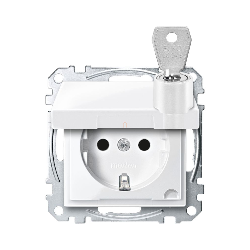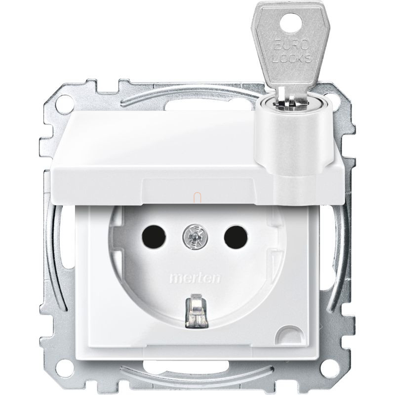 MERTEN 2P+F csatlakozóaljzat, biztonsági zsaluval, zárható csapófedéllel, rugós bekötés, 16A, System-M, polárfehér MEG2315-0319 Schneider