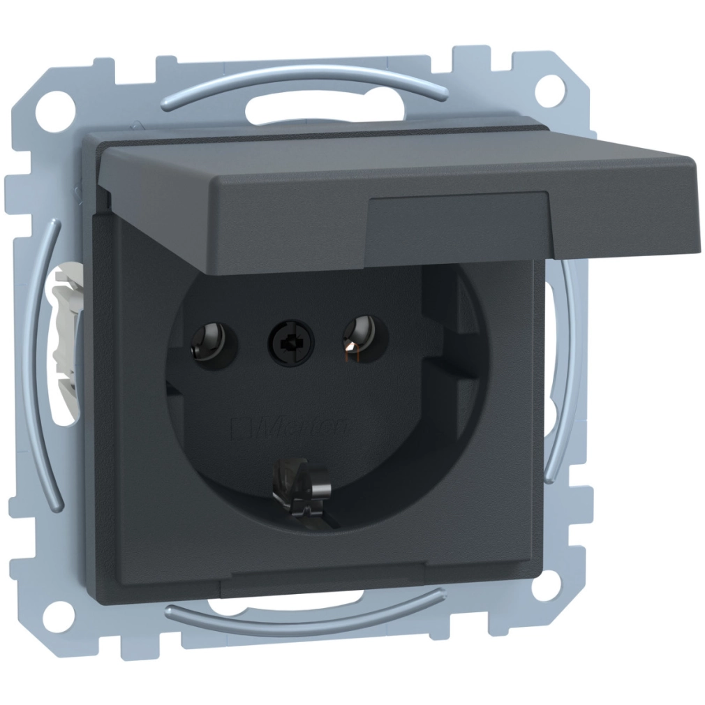 MERTEN 2P+F csatlakozóaljzat, csapófedéllel, rugós, 16A, System-M, antracit MEG2311-0414 Schneider