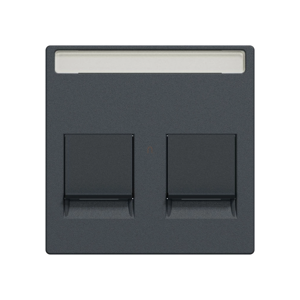 MERTEN Fedlap, 2xRJ45 moduláris betétekhez, feliratozható, System-M, antracit MEG4564-0414 Schneider