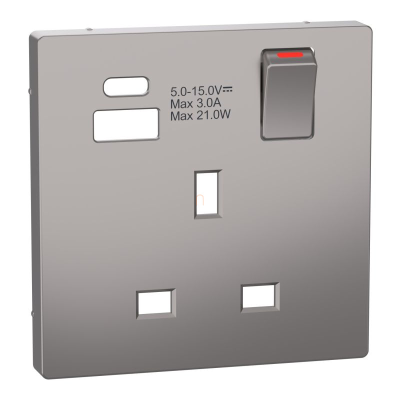 MERTEN Fedlap, USB töltős, kapcsolható brit csatlakozóaljzathoz, System-D, nikkel MTN2125-6050 Schneider