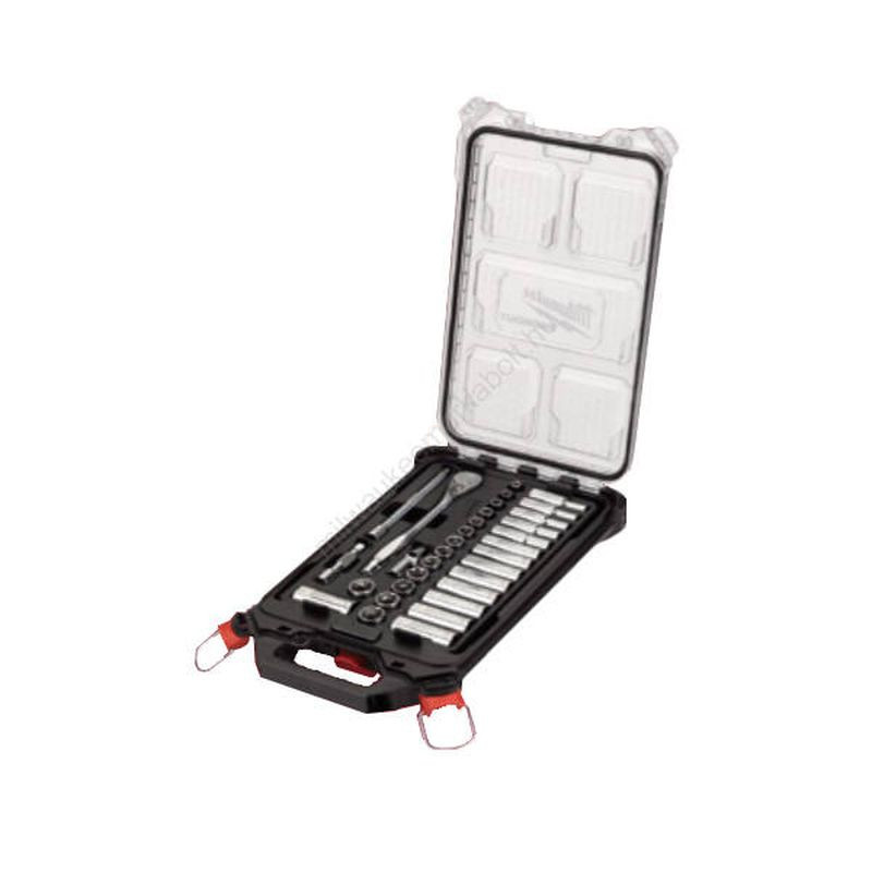 Milwaukee 1/4colracsnis dugókulcs készlet metrikus (28részes) PACKOUT keskeny 4932478812
