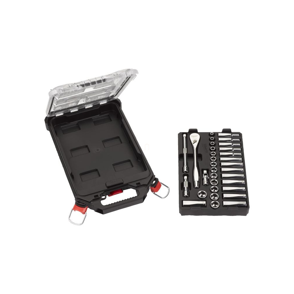Milwaukee 3/8col racsnis dugókulcs készlet metrikus (32részes) Packout keskeny rendszerező 4932478813