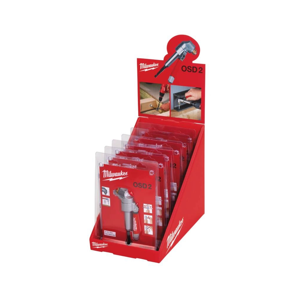 Az OSD2 sarokfúró - és csavarozó adapter a legjobb megoldás minden csavarozási és fúrási feladathoz a nehezen hozzáférhető helyeken.\n\tAz ¼″ mágneses Hex bitbefogás alkalmas a standard 25 mm-es (C 6.3) és lekerekített végű bittekhez (E 6.3) és fúrószárakhaz egyaránt.\n\tFém fogaskerekek, hajtómű és burkolat a lágy és pontos fúrásért - kitűnő erőátvitel.\n\tSoftgrip 360°-ban forgatható oldalfogantyú jobb és balkezes használatra 4 rögzítési pozícióban.\n\tKét lépcsős ¼″ / (6 mm) hatszög befogás, vagy 10 mm hatszög szár.\n\tIpari minőség használható minden akkumulátoros szerszámhoz, akár 40 Nm nyomatékot és 1750 1/perc fordulatot igénylő alkalmazásokhoz is.\n\tAz OSD2 kiválóan alkalmas fúrásra és csavarozásra egyaránt - maximálisan sokoldalú.\n\tAz 51 mm magassága lehetővé teszi a szűk helyen való alkalmazást.\n