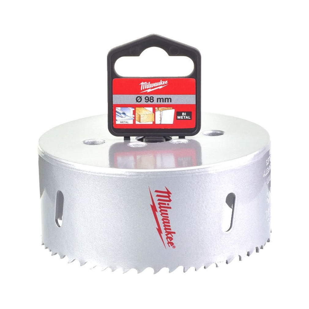 Milwaukee Bimetál lyukfűrész (építőipari) 98 mm 4932464705\nOptimalizált 4/6 fogkiosztás a gyorsabb vágáshoz és univerzális használathoz.\nBi-Metal fogak a legjobb tartósságért és a kopásállóságért.\nUniverzális felhasználásra: acél, színesfémek, fa, gipszkarton, műanyag.\n\n\n