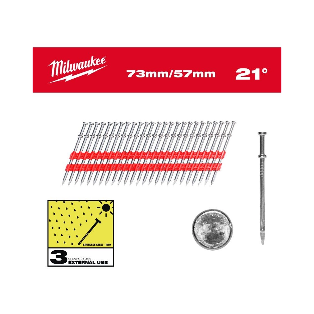 Milwaukee Dupla fejű szegek, Kerekfejű 21° 73mm/57mm (2000 db/cs) 4932498155
