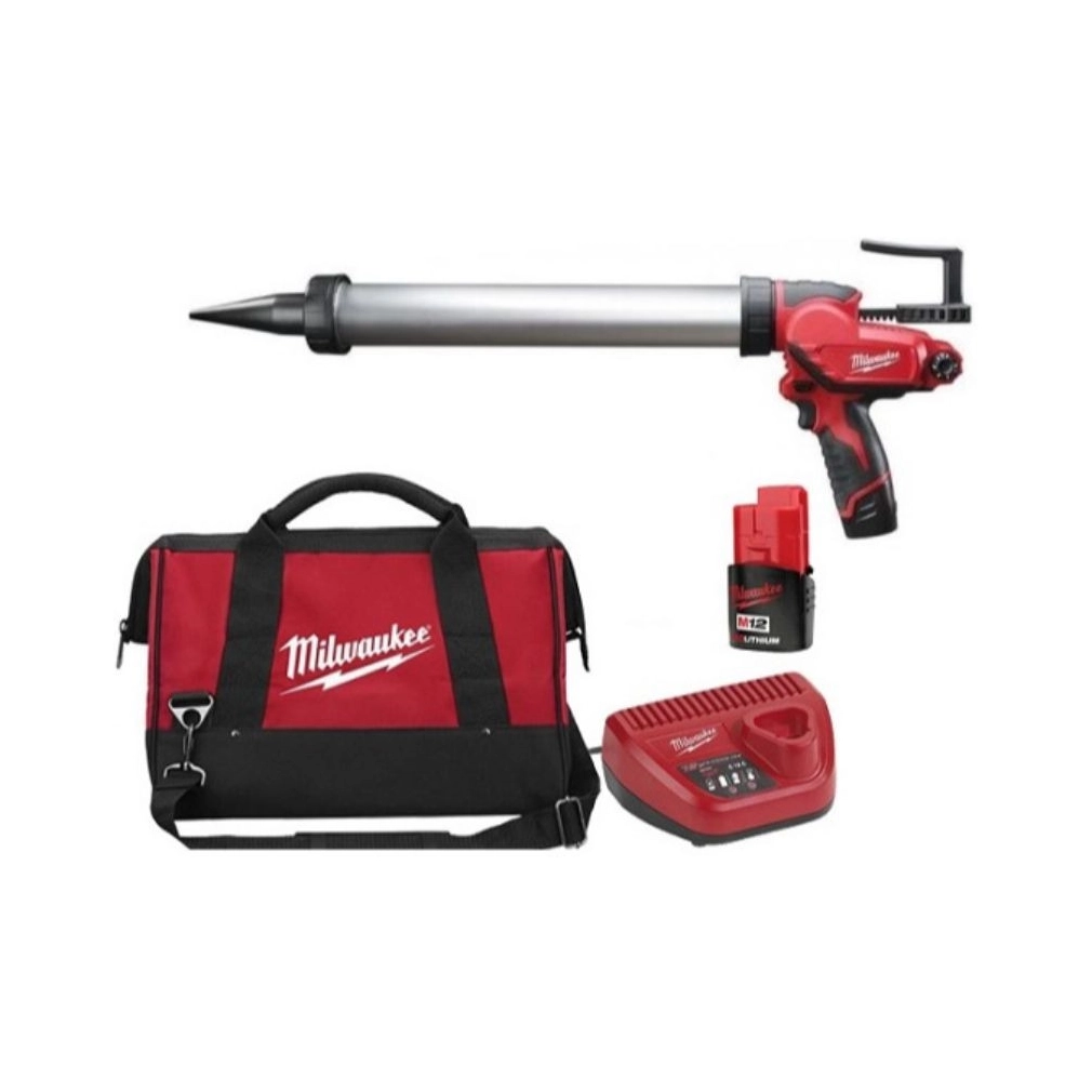 Milwaukee M12 Tömítőanyag-és ragasztópisztoly 600ml alumínium tubus, 1x2.0Ah akkumulátorral, 40 perces töltővel, táskával M12 PCG/600A-201B 4933441670