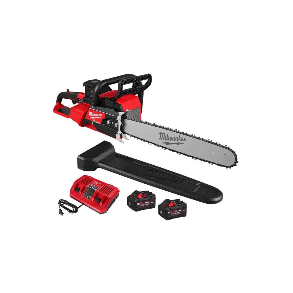Milwaukee M18F2CHS50-0 Dupla akkumulátoros láncfűrész, 50cm 4933480120\nKiemelkedő vágási sebesség keményfában a 60 cm3-es benzines láncfűrészekhez képest.\nA 9,5 Nm csúcsnyomaték fenntartja a lánc sebességét nehéz alkalmazások során, és megakadályozza a lefulladást.\n50 cm-es vágórendszer és 5,8 LE-s csúcsteljesítmény a fakivágási feladatok hatékony elvégzéséhez.\nJól látható vágási irányzékok a precizitás és pontosság érdekében.\nKét teljesítménybeállítás lehetőséget biztosít a felhasználónak, hogy a legnagyobb teljesítmény vagy a hosszabb üzemidő között válasszon.\nKettős fém rönktámasz a nagyobb erőátvitel érdekében vágás közben.\nFUEL™ technológia - 1 másodperc alatt eléri a maximális teljesítményt.\nVáltoztatható sebességkapcsoló.\nA kifolyásmentes olajtartályhoz könnyű hozzáférni, továbbá áttetsző ablakkal van ellátva.\nLáncszerszámmal, láncvédő tokkal szállítva.\nFUEL™ platformunk DNS-e újradefiniálja a vezeték nélküli technológia egyensúlyát. A MILWAUKEE® POWERSTATE™ szénkefe nélküli motor, REDLITHIUM™ akkumulátor és REDLINK PLUS™ intelligens elektronika páratlan teljesítményt, üzemidőt és tartósságot biztosít.\nRugalmas akkumulátor rendszerrel - MILWAUKEE® M18™ akkumulátorokkal működik.\n\n\n