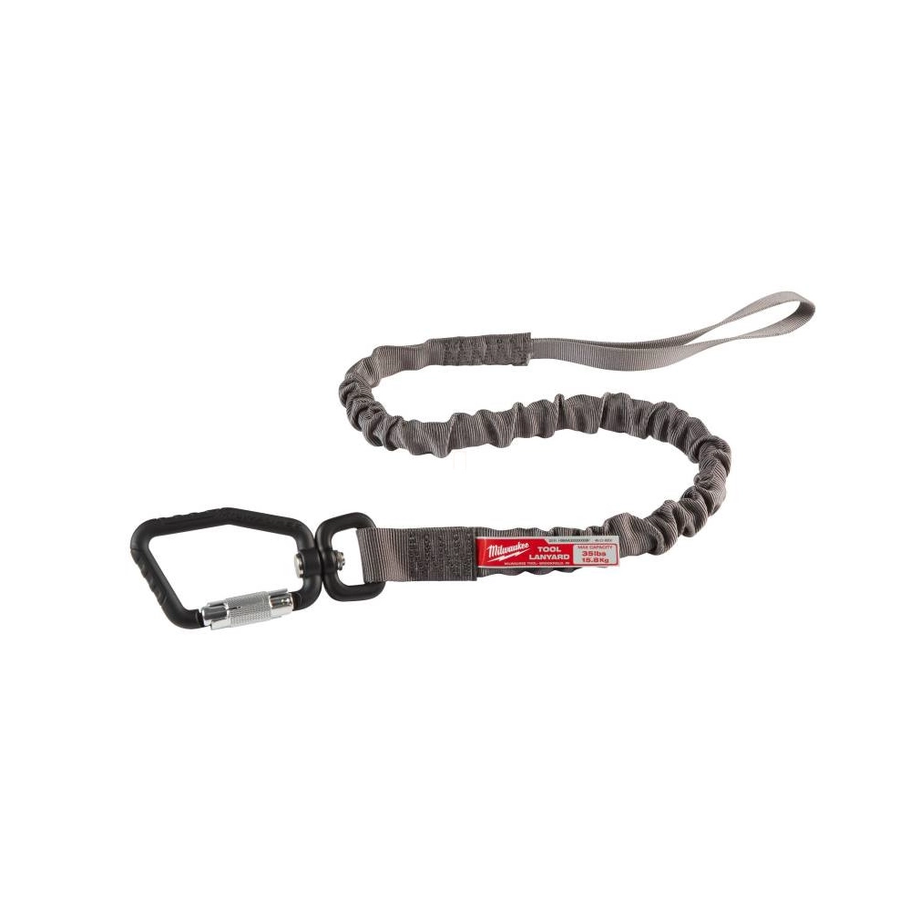 Milwaukee szerszámtartó kötél 15,8 kg-ig\n\tLeejtés elleni megoldás\n\tFokozottan lassítja és megállítja a leeső szerszámokat, vagy ha a leesés elkerülhetetlen, akkor csökkenti a zuhanás erejét\n\tA dupla záras karabiner biztos rögzítést nyújt, amely nem lazul meg és nem csúszik szét\n\tAz integrált forgószerszám megakadályozza a csavarodást, a csomó kialakulását, növeli a mozgathatóságot\n\tSzínkód a terhelhetőséghez: könnyedén azonosítható a kötél terhelhetősége\n\tAlkalmazható minden kötél rögzítő szemmel rendelkező szerszámhoz\n
