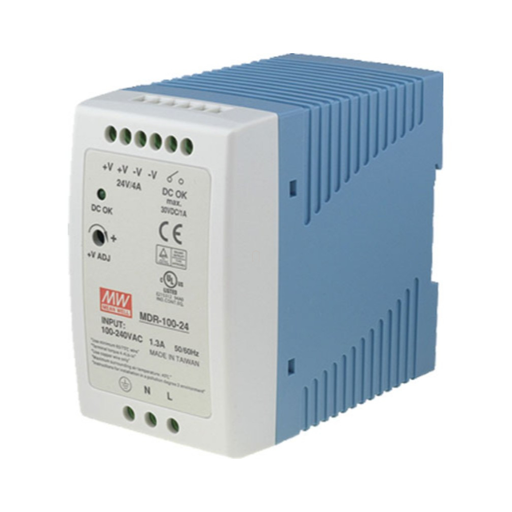 Mini kapcsolóüzemű tápegység, DIN sínre Vin:85-264 VAC/120-370 VDC, Vout: 24 VDC (0-4A), P:100 W Mean Well MDR-100-24