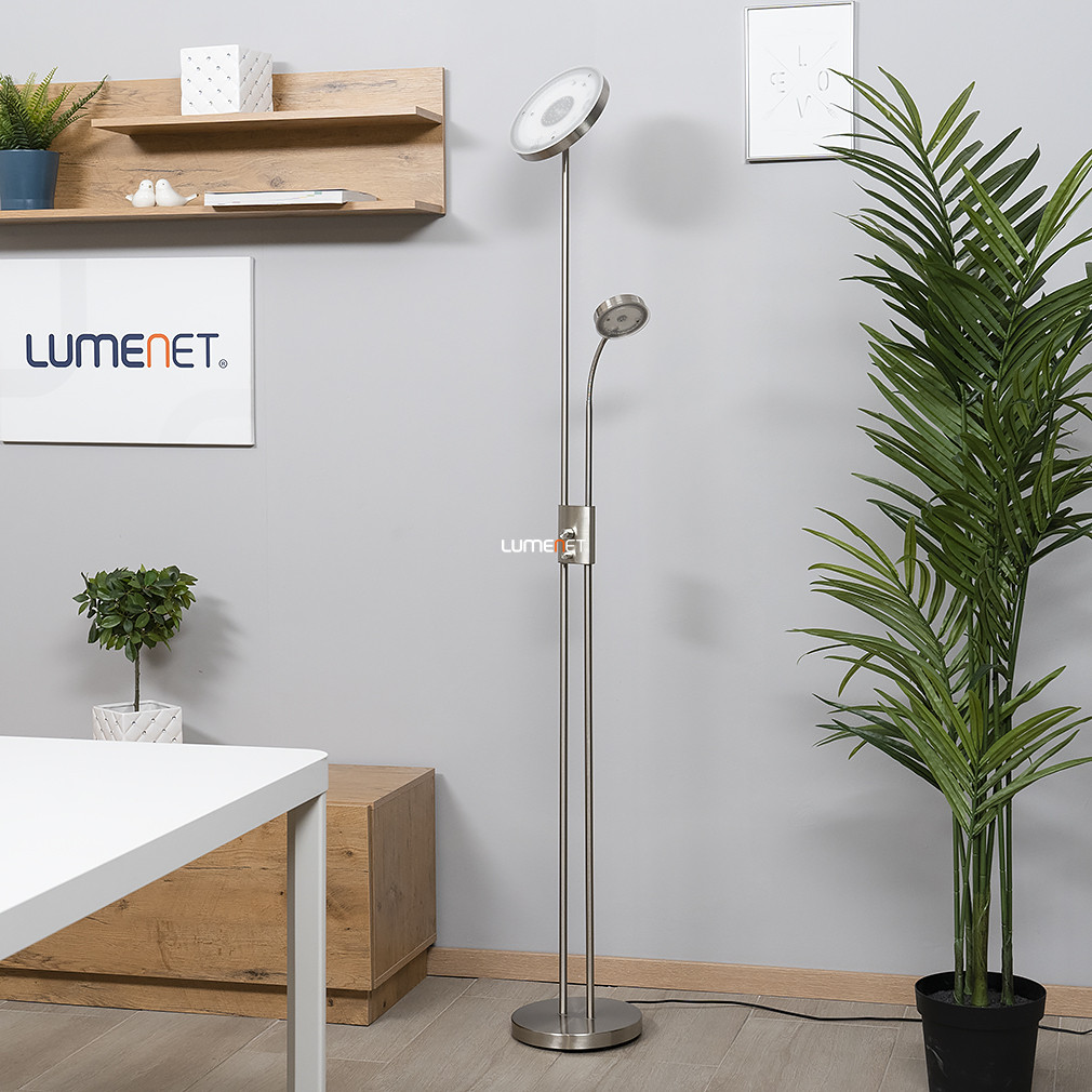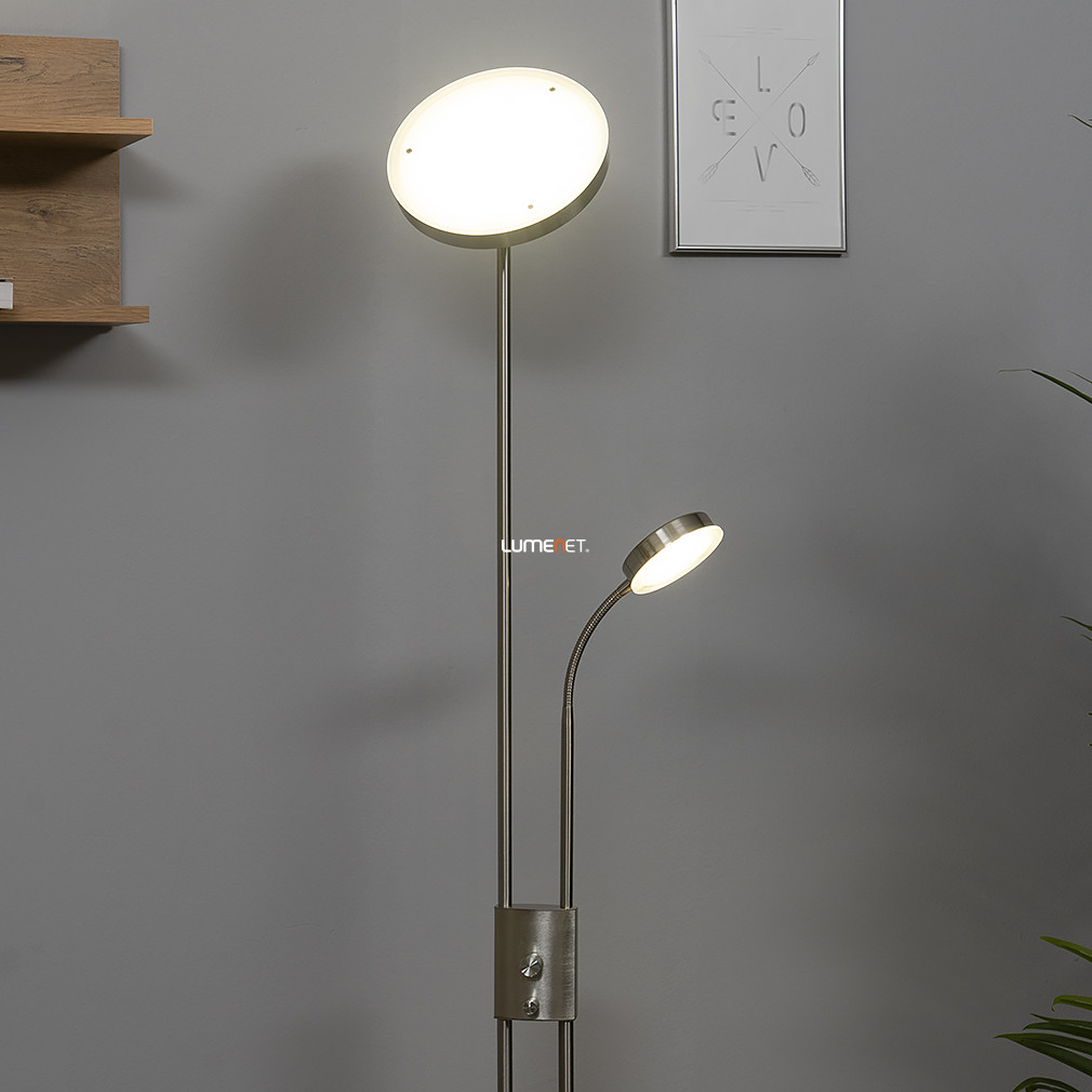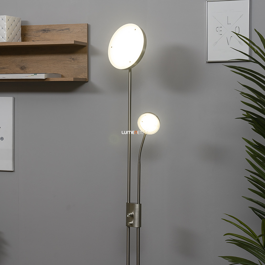 Minimál LED állólámpa olvasókarral, kapcsolóval állítható fényerővel - Ophus Rábalux 3239, üveg, 3000 K, 2110 lm, 23 W