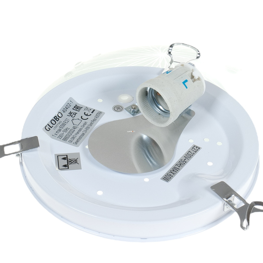 A Calimero Globo 40402-1 mintás mennyezeti lámpa modern stílusban, kristály díszítéssel készült, amely elegáns megjelenést biztosít bármely helyiségben. A lámpatest opál színű üvegből és fémből készült, átmérője 250 mm, magassága 60 mm. Az E27-es foglalat egy darab cserélhető fényforrás befogadására alkalmas, amely nem tartozék. A lámpa IP20 védettséggel rendelkezik, így beltéri használatra alkalmas. A termék tömege 0,8 kg, csomagolási méretei 26x26x10 cm. A Calimero Globo 40402-1 mennyezeti lámpa nem szabályozható, színhőmérsékletét és teljesítményét a beszerelt fényforrás határozza meg.