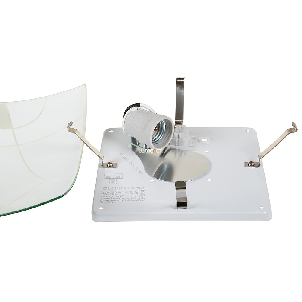 A Paranja Globo 40403-1 mintás mennyezeti lámpa modern stílusban készült, opál üveg és ezüst színű fém kombinációjával. A lámpatest 1 db E27 foglalattal rendelkezik, amelybe cserélhető fényforrás helyezhető, így a fényáram, fényszín, teljesítmény és színhőmérséklet a választott izzótól függ. A lámpa nem szabályozható, védettségi besorolása IP20, amely beltéri használatra teszi alkalmassá. Méretei 250 mm hosszúság, 250 mm szélesség és 60 mm magasság, tömege 0,94 kg. A termék nem tartalmaz fényforrást, külön szükséges beszerezni.