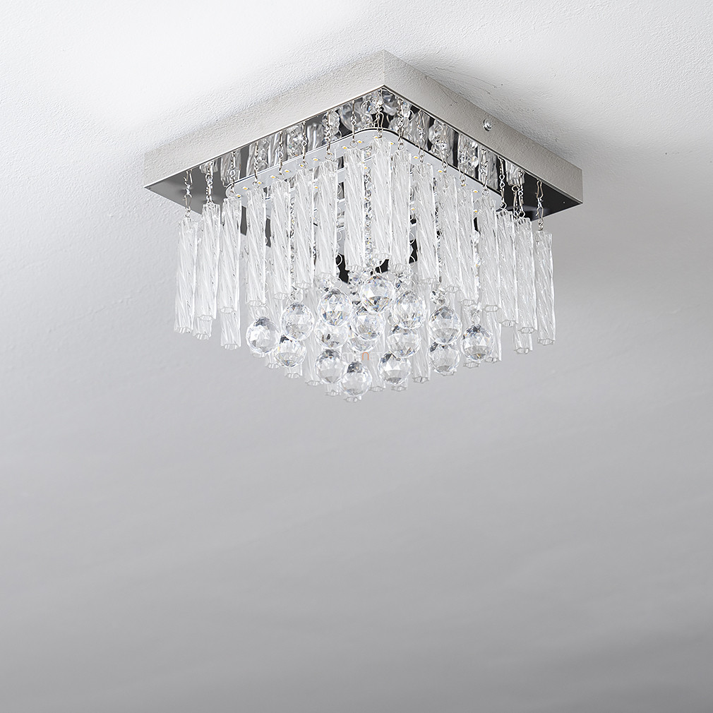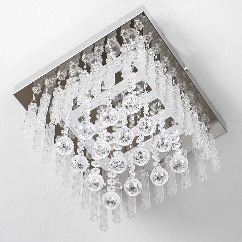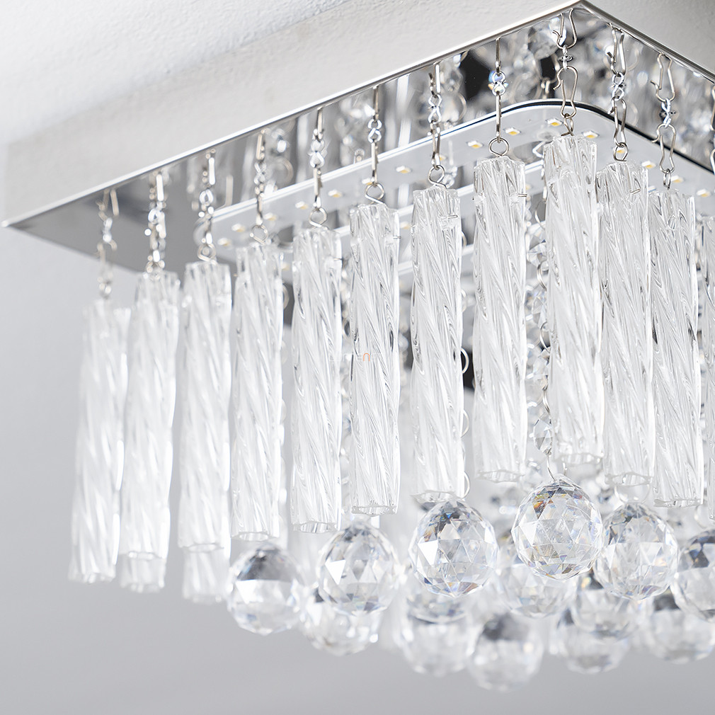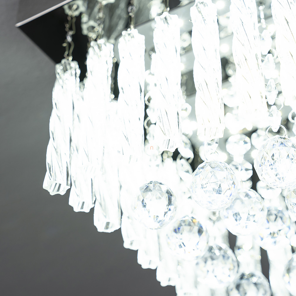 A Mathilda Globo 68396-12 modern LED kristály csillár elegáns, glamour stílusú mennyezeti lámpatest, amelyet 25x25 cm-es méretben terveztek. A lámpatest fényforrása egy 12 wattos, beépített LED modul, amely 840 lumen fényáramot biztosít hidegfehér, 4000 K színhőmérsékleten. A csillár anyaga fém és kristály, színe ezüst és áttetsző, így modern megjelenést kölcsönöz bármely helyiségnek. A termék nem szabályozható, védettségi besorolása IP20, ami beltéri használatra alkalmassá teszi. A lámpatest tömege 1,5 kg, magassága 15 cm, csomagolási méretei pedig 26x26x13 cm. A csillár fényforrást tartalmaz, foglalata LED modul, gyártója a Globo.