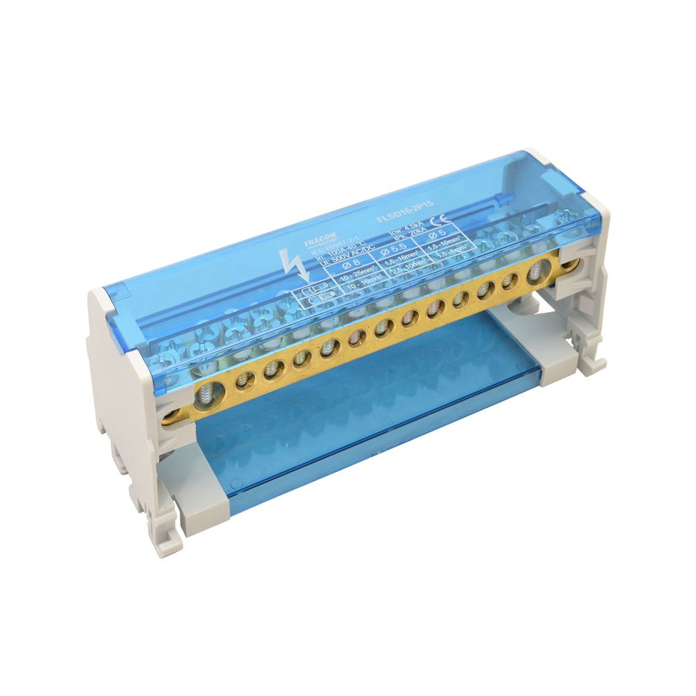 Moduláris elosztóblokk nyitható fedéllel 2×25 mm2 / 6×10mm2,7×16mm2 100A FLSO25-2P15 Tracon
