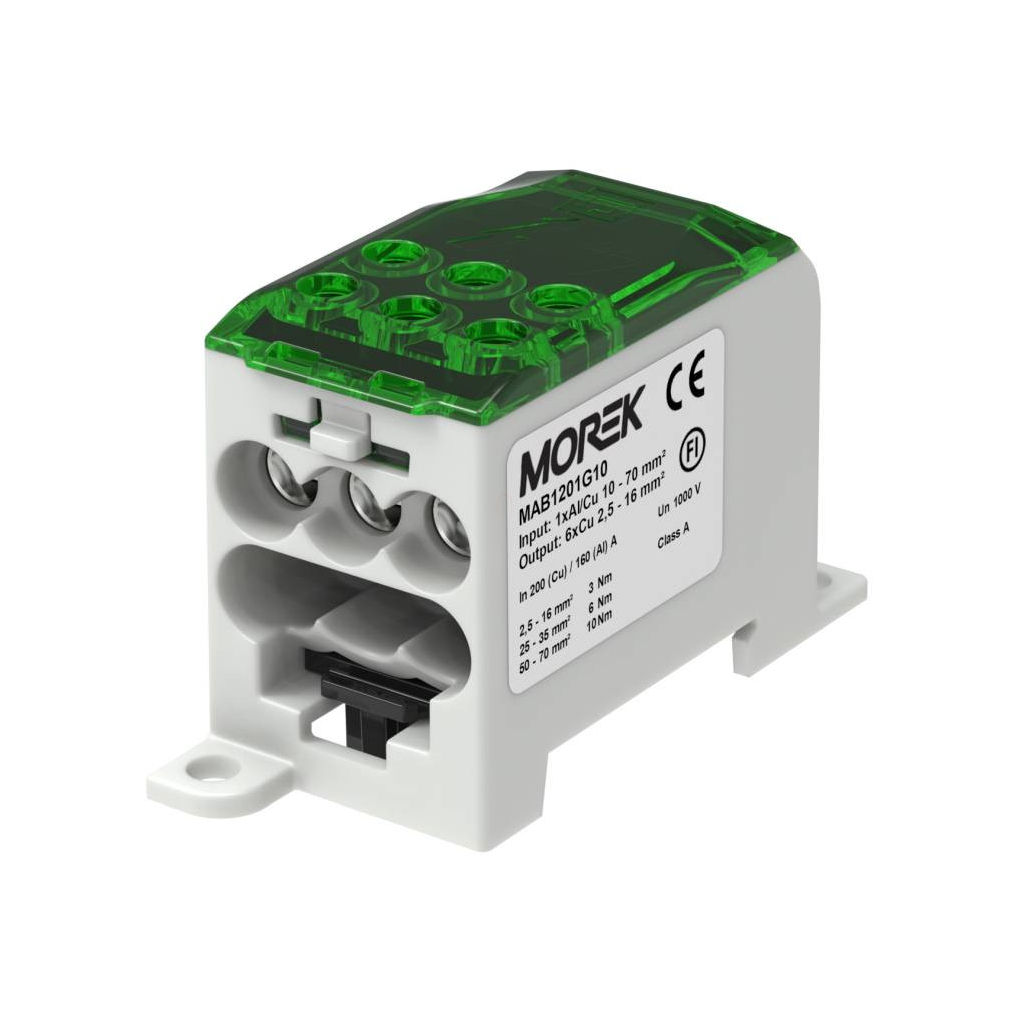 Morek Elosztóblokk, OJL 200A, zöld, 1xAl/Cu10-70 - 6Cu2,5-16 MAB1201G10