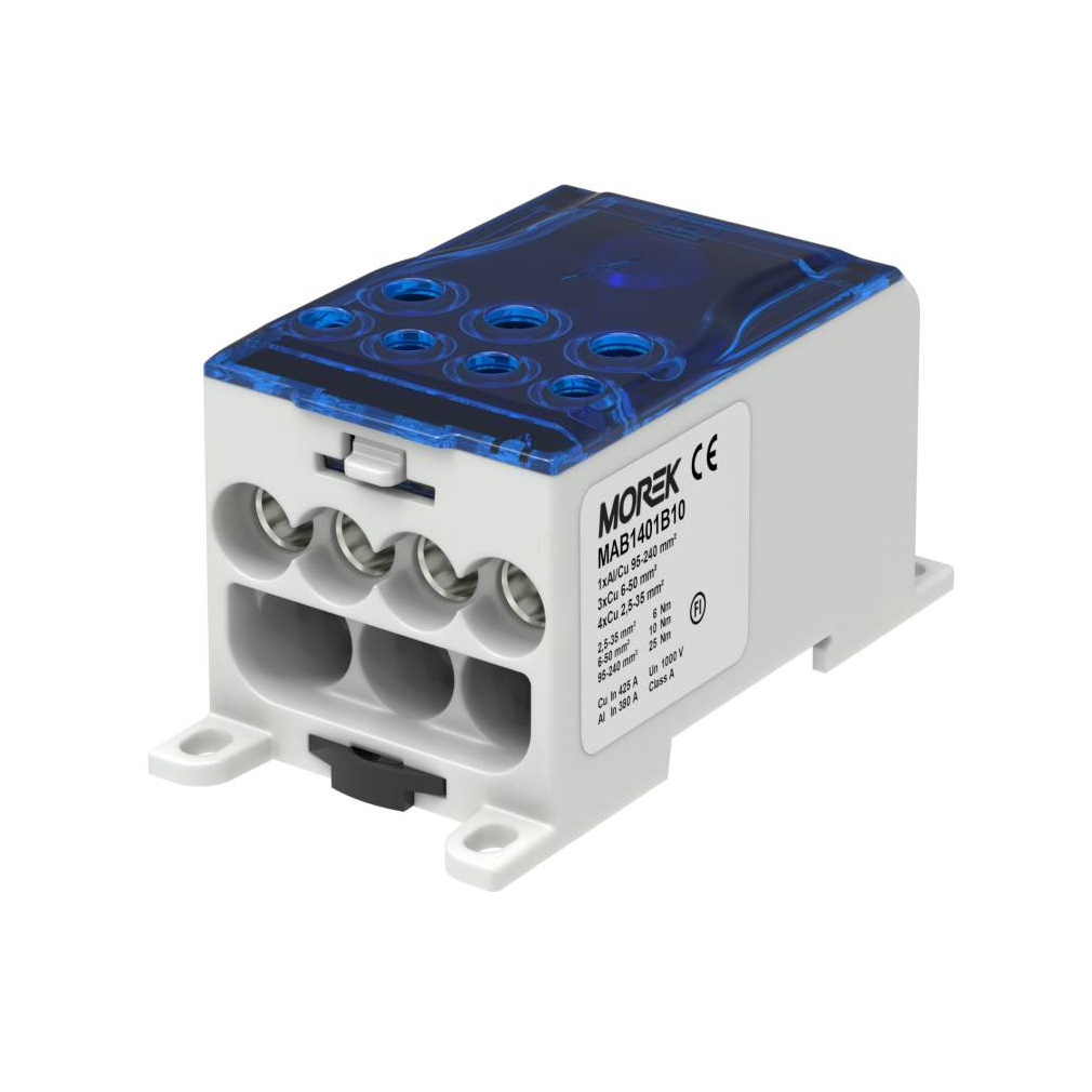 Morek Elosztóblokk OJL 400A kék 1xAl/Cu95-240 - 4xCu35/3xCu50 MAB1401B10