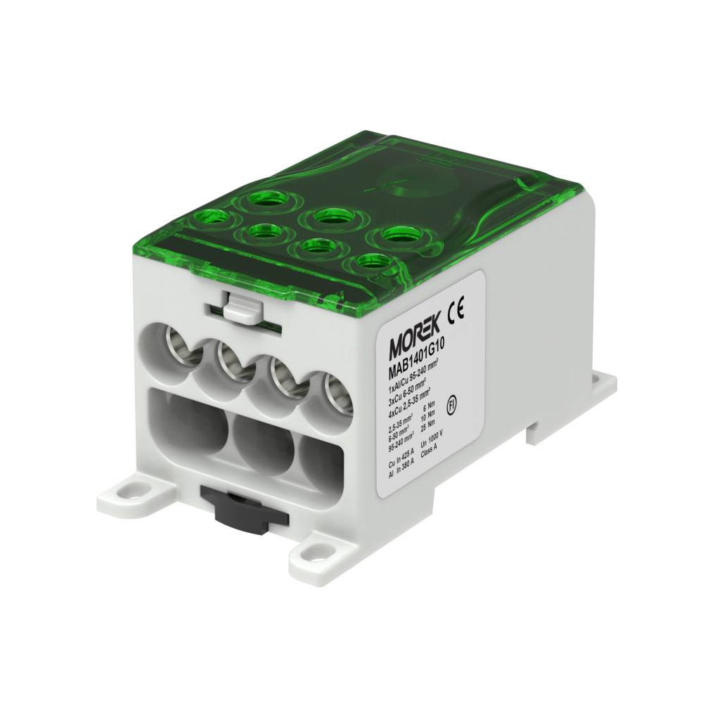 Morek Elosztóblokk OJL 400A zöld 1xAl/Cu95-240 - 4xCu35/3xCu50 MAB1401G10