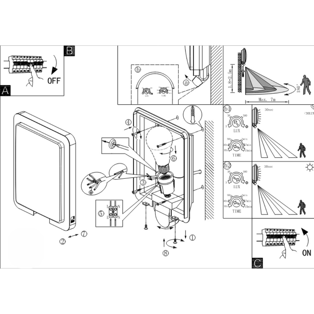 Mozgásérzékelős kültéri fali lámpa, ezüst-fehér színű - Mussotto Eglo 97218