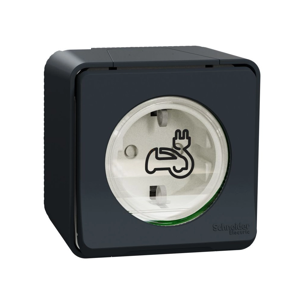 Schneider Electric Mureva Styl - MUR36012 - EV-töltő aljzat, csapófedéllel, csavaros, komplett, falon kívüli, antracitszürke, 16A, megerősített csatlakozás