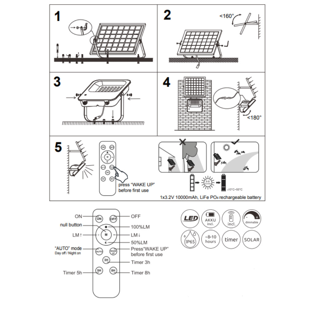 Napelemes fali LED lámpa mozgásérzékelővel, távirányítóval, melegfehér - Solar Globo 36487